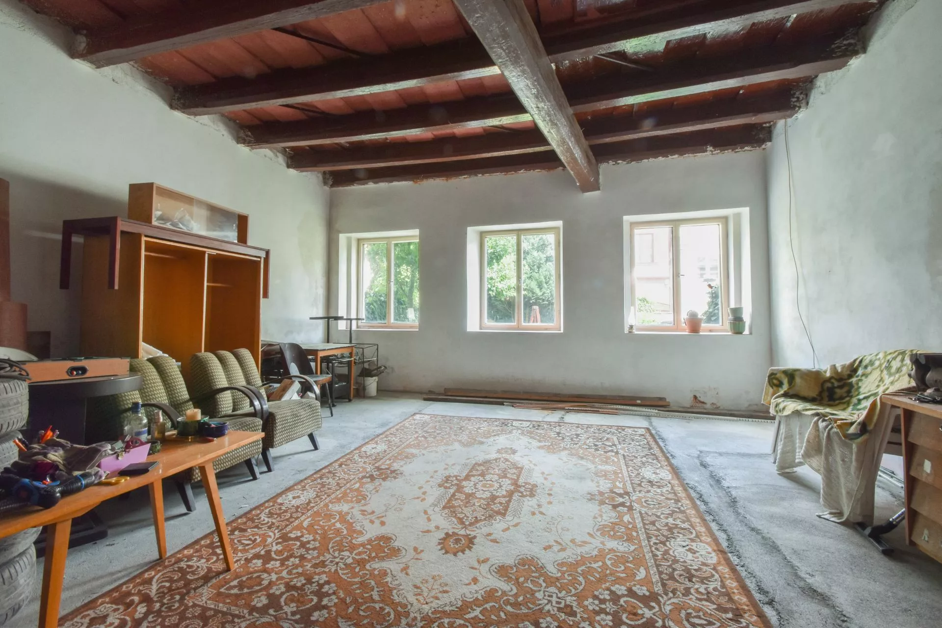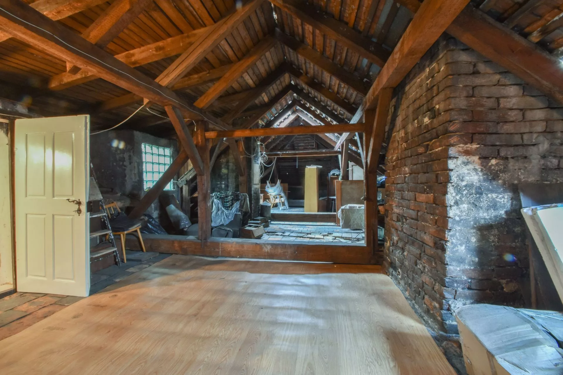 V patře je byt 4+1, 130 m2, rekonstruovaný v roce 2015 a nad ním se nachází pěkná půda s krovem a krytinou z roku cca 1970.