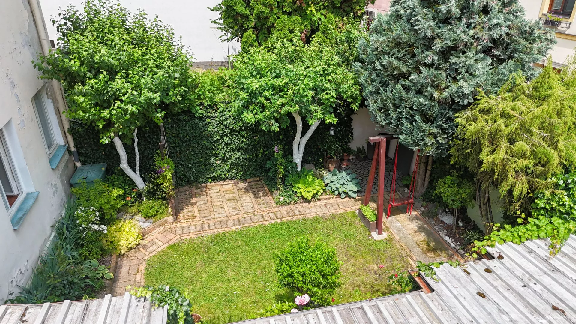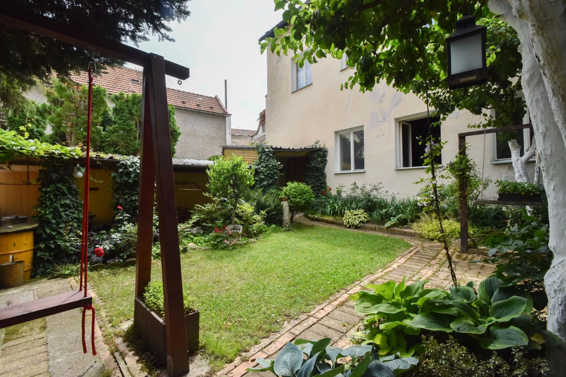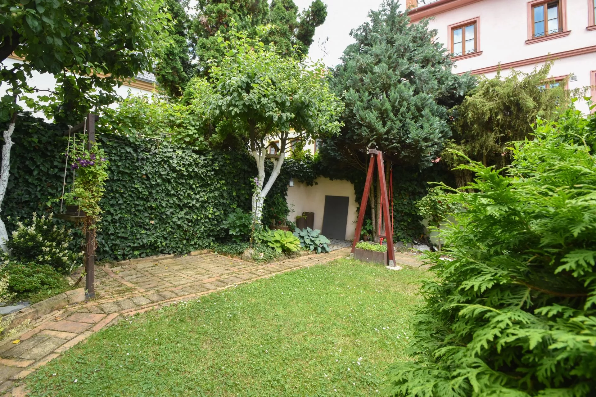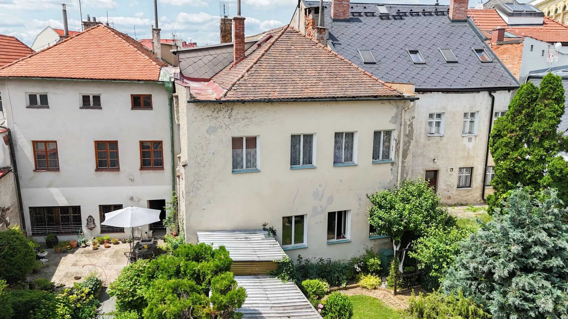 Dům je průčelím orientován do ulice Kapucínská a zadním traktem do ulice Hrnčířská, ze které je také vjezd pro parkování vašeho vozu. Zahrada má cca 100 m2 a nyní se dělí na odpočinkovou a parkovací část – jak to bude v budoucnu, už je jen na vás. Možnost vjezdu na vlastní pozemek je v této lokalitě velmi vzácná!