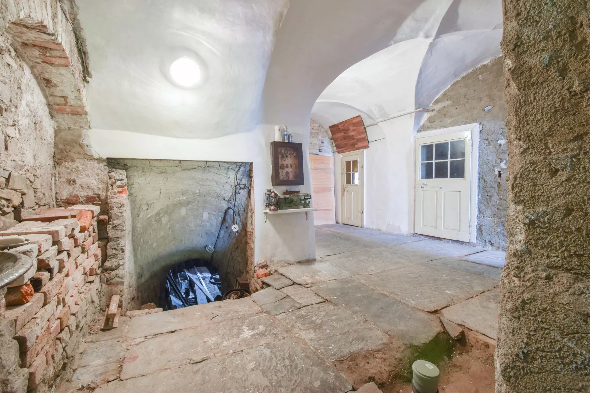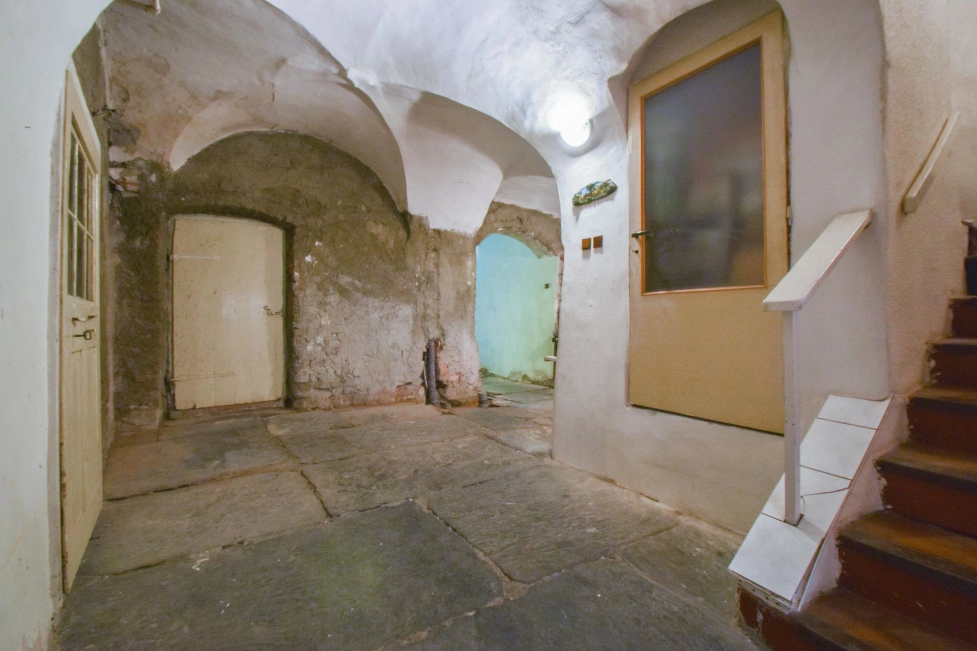 Dům samotný má zastavěnou plochu cca 180 m2, je podsklepený, kdy sklepení je klenuté a nabízí možnost pro využití třeba na domácí vinárnu apod. V přízemí, které má podlahovou plochu 124 m2, jsou dvě menší místnosti do ulice Kapucínské, středová hala a velká místnost směrem do zahrady.