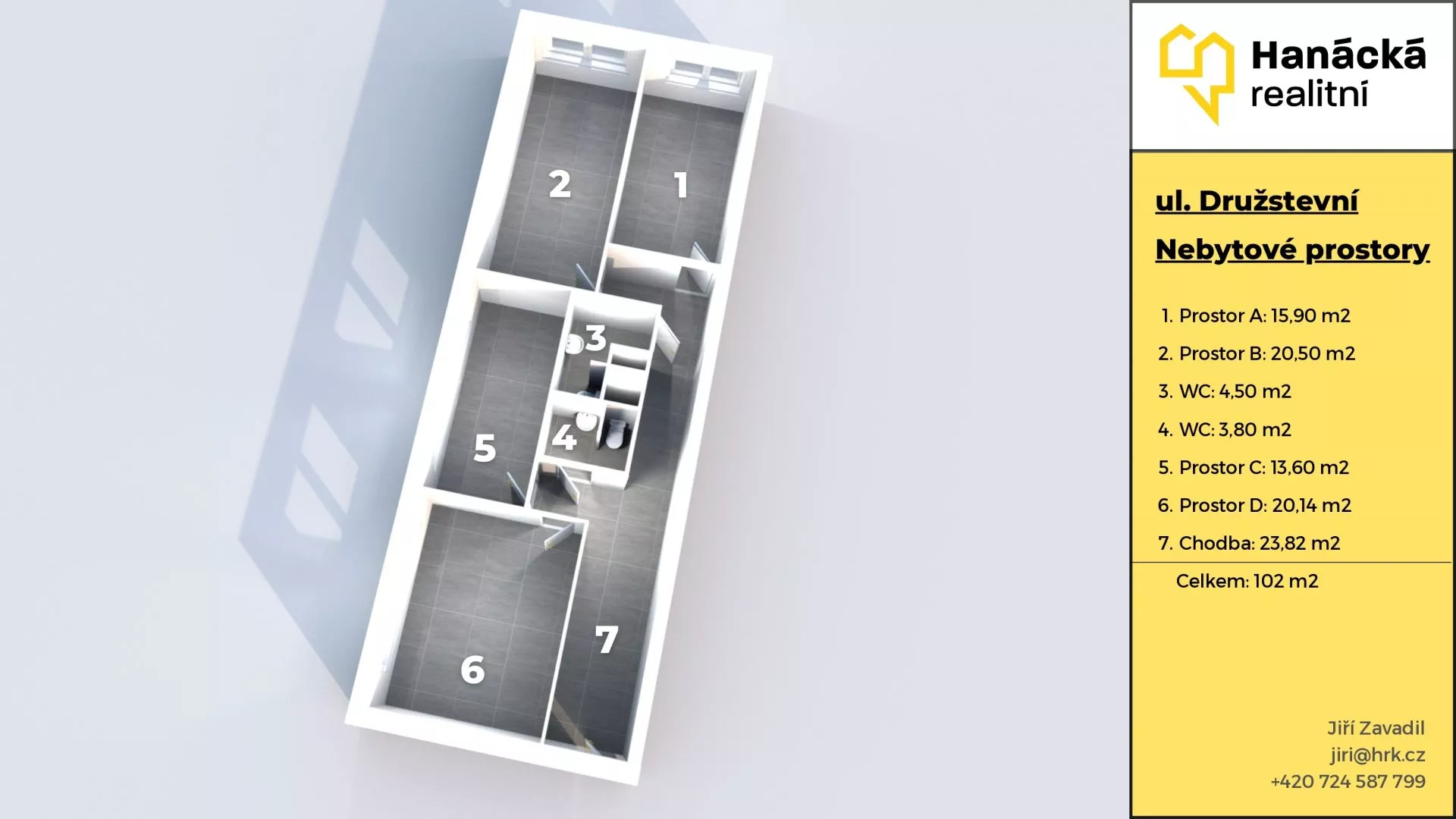 S výhradním zastoupením nabízíme ke koupi nebytové prostory v Olomouci na ulici Družební. Jedná se o nebytové prostory situované v přízemí moderního objektu kolaudovaného v roce 2008 s bezbariérovým vstupem přímo z ulice. Celková plocha jednotky je 102 m2. Jednotka sestává ze vstupní chodby využitelné též jako recepce nebo čekárna, čtyř samostatných neprůchozích místností s denním světlem a dvou oddělených prostor s toaletami a příslušenstvím. Prostory jsou tak vhodné pro kanceláře, ordinace, školící centrum, klientské centrum a podobně. K maximálnímu využití potenciálu nabízených prostor přispívá taktéž možnost využít okna v přízemí jako reklamní poutač pro zviditelnění provozovny. Velkým plusem je taktéž poloha s velmi dobrou dopravní dostupností MHD (zastávky tramvaje i autobusu jsou vzdálené cca 100 m) a možnost využít potenciálu dvou přilehlých lidnatých městských čtvrtí Nové Sady a Povel. Nízké provozní náklady, vytápění je řešeno ústředním topením z dálkového zdroje, ohřev vody je centrální pro celý objekt. Koupě této nemovitosti může být i zajímavou investicí v případě následného pronájmu. Volné ihned. Více informací u makléře zakázky.