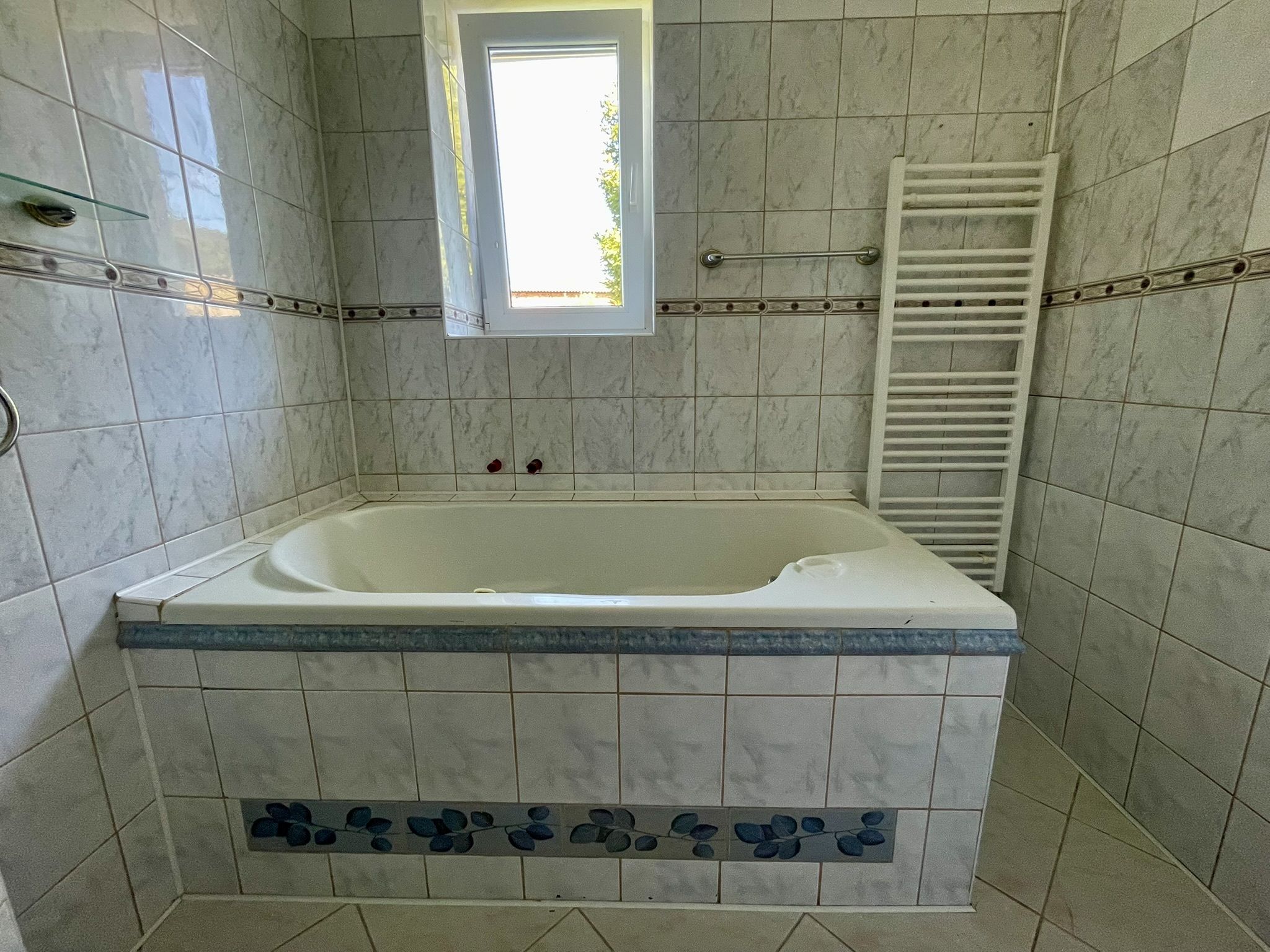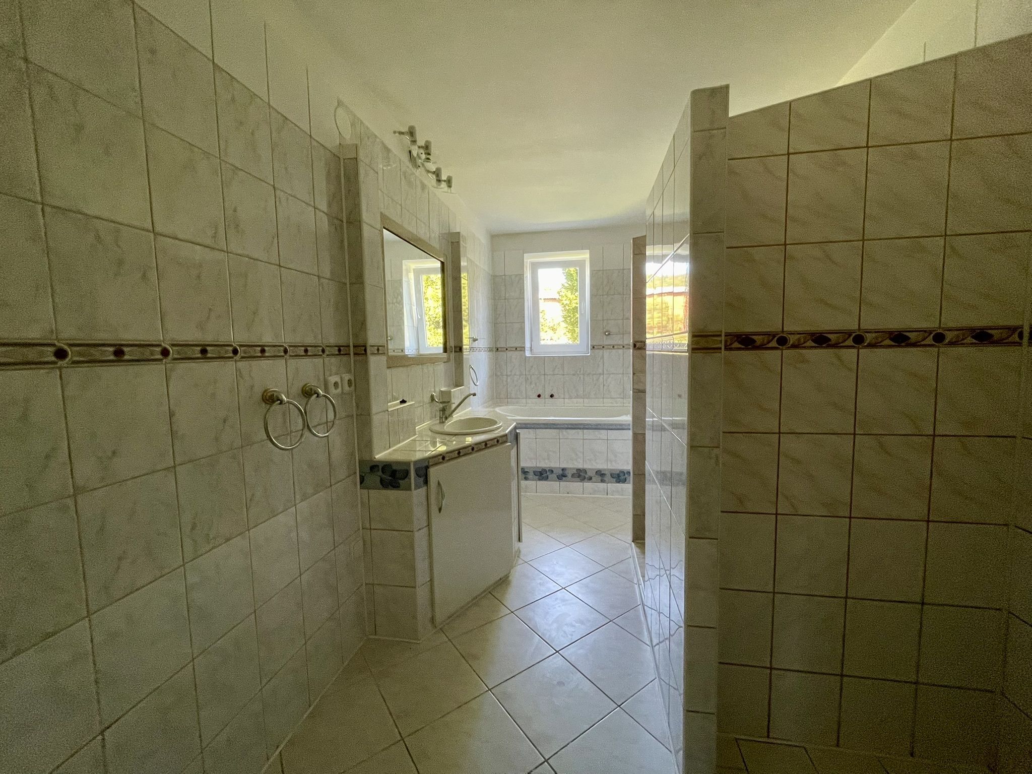 Nemovitost má plastová okna a dispozici 3+kk: vstupní chodba, obývací pokoj s kuchyňským koutem, ložnice a dětský pokoj. Součástí domu je také velká garáž s dílnou, sklep a kotelna s plynovým kotlem. K dispozici je přístavba ve fázi terasy, vhodná pro vybudování dalšího pokoje.