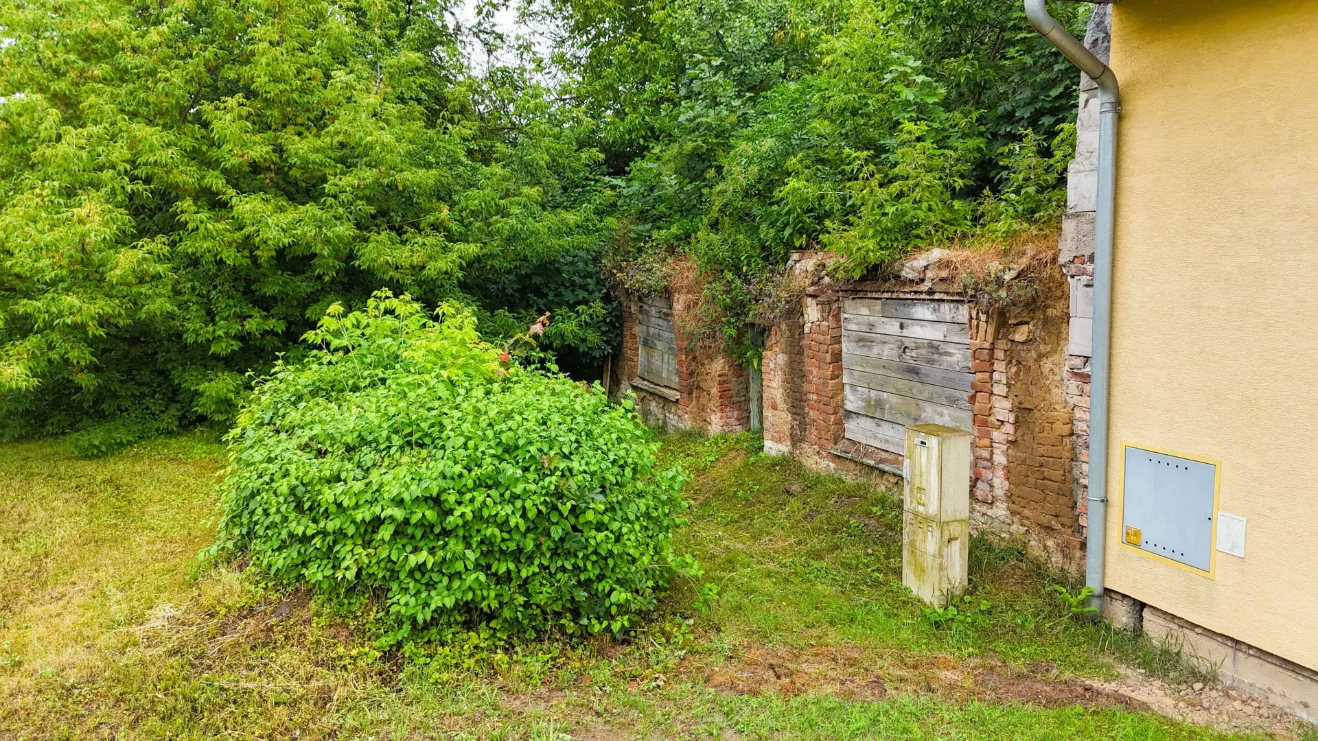 Na pozemku se nachází ruiny rodinného domu se zastavěnou plochou cca 100 m2 (dalších 50 m2 příslušenství). Dům má stále číslo popisné a adresu Božkova 228/1.